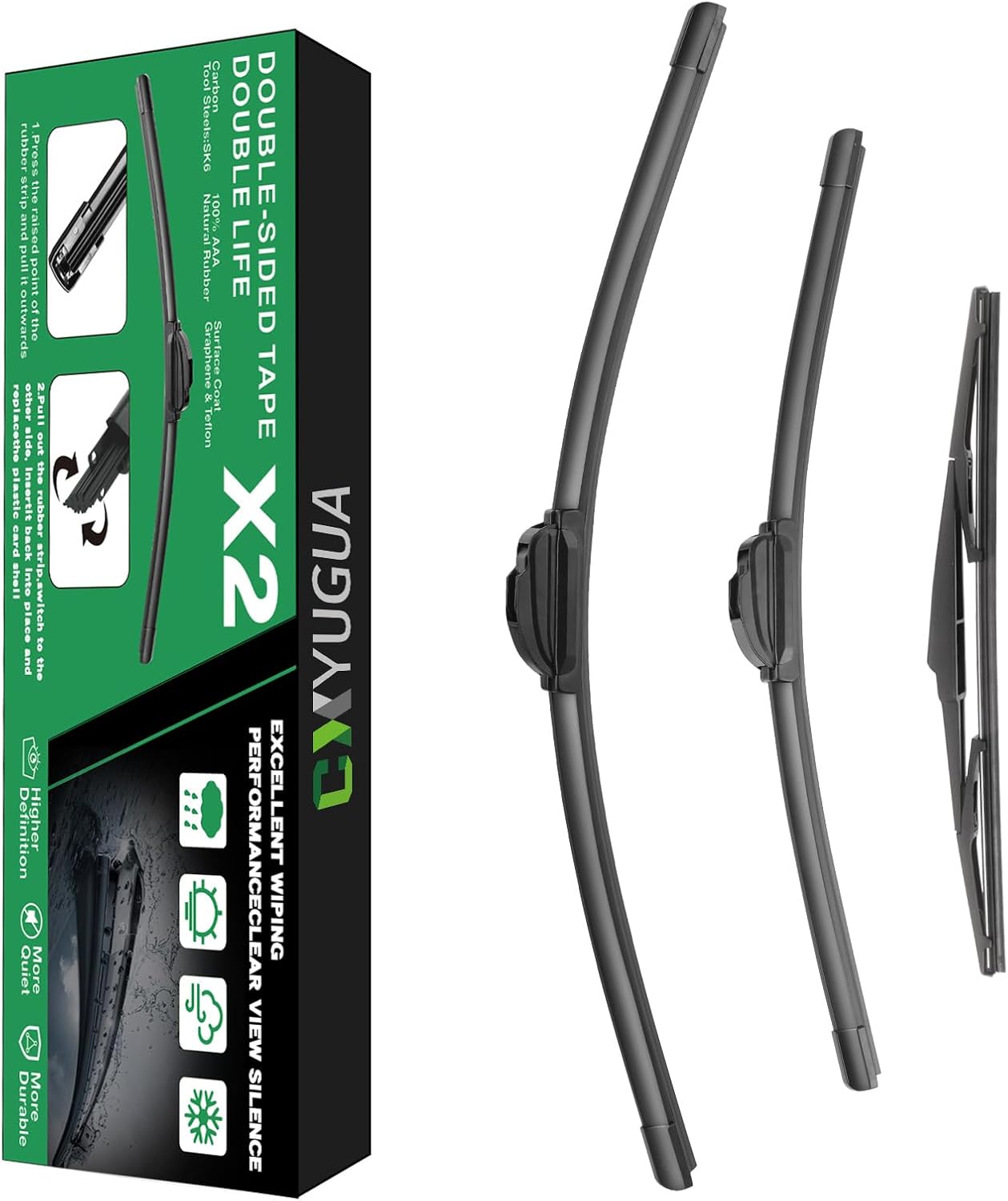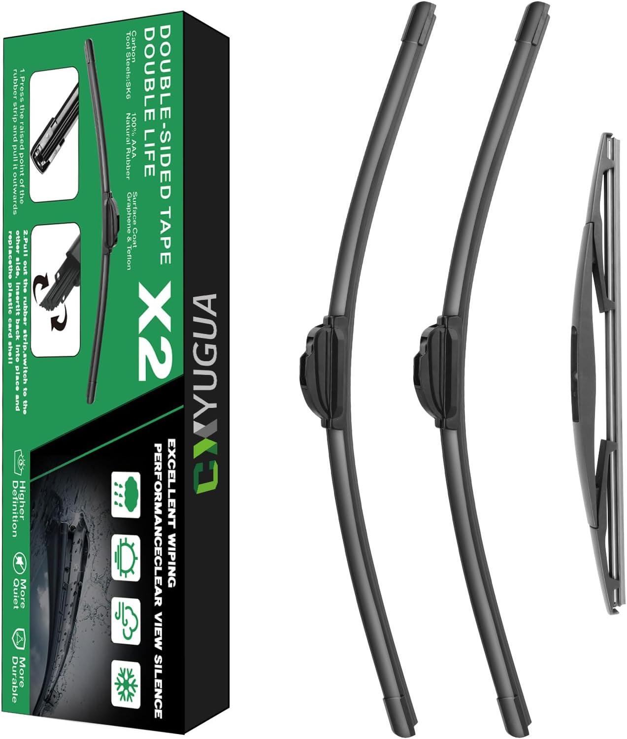 • 【Quality】: This wiper blades for my car adopts double high toughness memory spring steel plates, which always provide uniform wiping effect and leave no gaps when working. Whether it is rain or snow, you can keep driving safe and get a clear view.