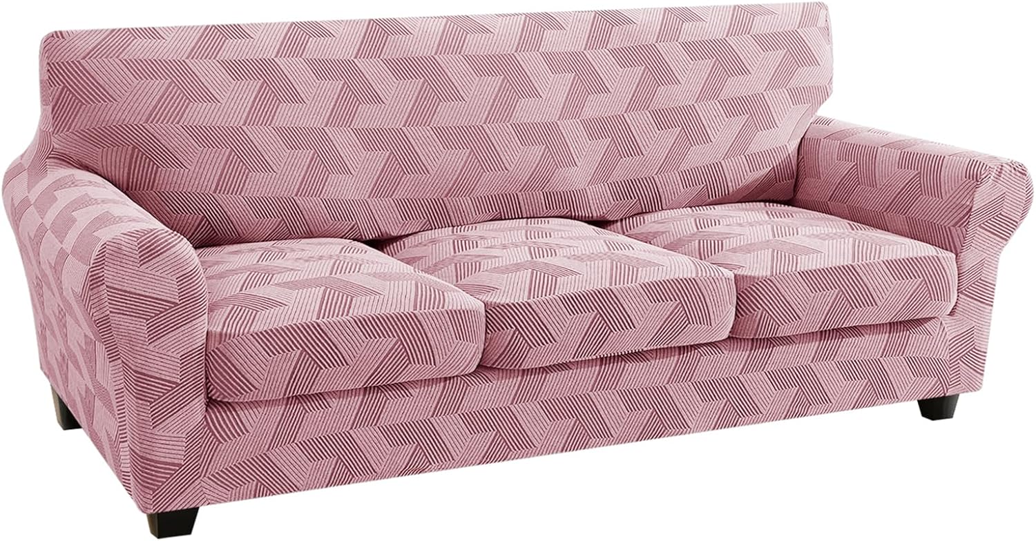 If you are looking for an EFFORTLESS & AFFORDABLE way to update your living room, you've come to the right place! Easily upgrade your furniture in minutes with JIVINER Geometrical Jacquard Couch Covers High Elastic and DurableJIVINER durable sofa slipcovers are crafted by 85% Polyester and 15% Spandex fabric, ensuring the slip covers soft, comfortable, stretchy, and durable for long-time use. And stretchy enough to fit most types of couches. Full ProtectionOur couch slipcovers aim to provide a full coverage for your sofa furniture. Protect your sofa from daily stains, great for homes with pets, or for anyone seeking an economical way for couch protection Upgraded Fit and DecorationSoft sofa slipcovers can fit your sofa couch perfectly and become a centerpiece in your living room. Featuring with elastic bands and foam sticks, fitted sofa covers will not easily move or shift after usingSize ChooseArmchair covers with 1 cushion cover fit for length between 31-46 inchesLoveseat covers with 2 cushion covers fit for length between 55-69 inchesXL Loveseat covers with 2 extra large cushion covers fit for length between 71-91 inchesSofa covers with 3 cushion covers fit for length between 71-91 inchesXL Sofa covers with 3 cushion covers fit for length between 91-110 inchesCustomer Service All our stretchable couch protectors are high quality with exquisite workmanship. We think our premium sofa slipcover will not let you down. If you have any questions, please contact us and we will pleased to help you.