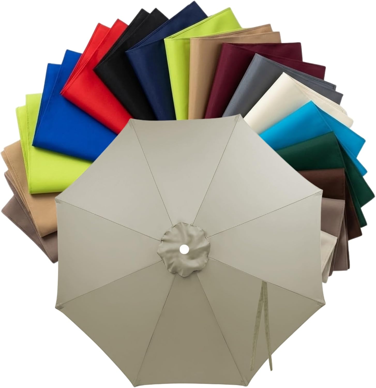 Refresh your outdoor space with our Patio Umbrella Replacement Canopy. Crafted from durable polyester fabric, this umbrella canopy cover is designed to provide reliable shade and protection for your patio, garden, or cafe setup. It features UV protective and water resistant properties, helping to maintain its structural integrity and resist fading against daily sun exposure. Whether you are updating a yard table umbrella or a pool umbrella, this replacement canopy offers a practical and cost effective solution to extend the life of your existing frame without the need to purchase a completely new unit.Product SpecificationsMaterial: Polyester FabricAvailable Sizes: 2.0m (6.6FT), 2.15m (7.0FT), 2.3m (7.5FT), 2.5m (8.2FT), 2.7m (8.8FT), 2.8m (9.2FT), 3.0m (9.8FT), 3.3m (10.8FT), 3.5m (11.5FT), 4.0m (13.1FT)Suitable Rib Count: Available for 6 ribs or 8 ribs framesWarm TipsCanopy Only: Please note that this product includes the replacement umbrella canopy only. The umbrella frame, center pole, and top finial are not included.Color Variation: Slight color variations may occur due to different monitor displays and lighting environments.