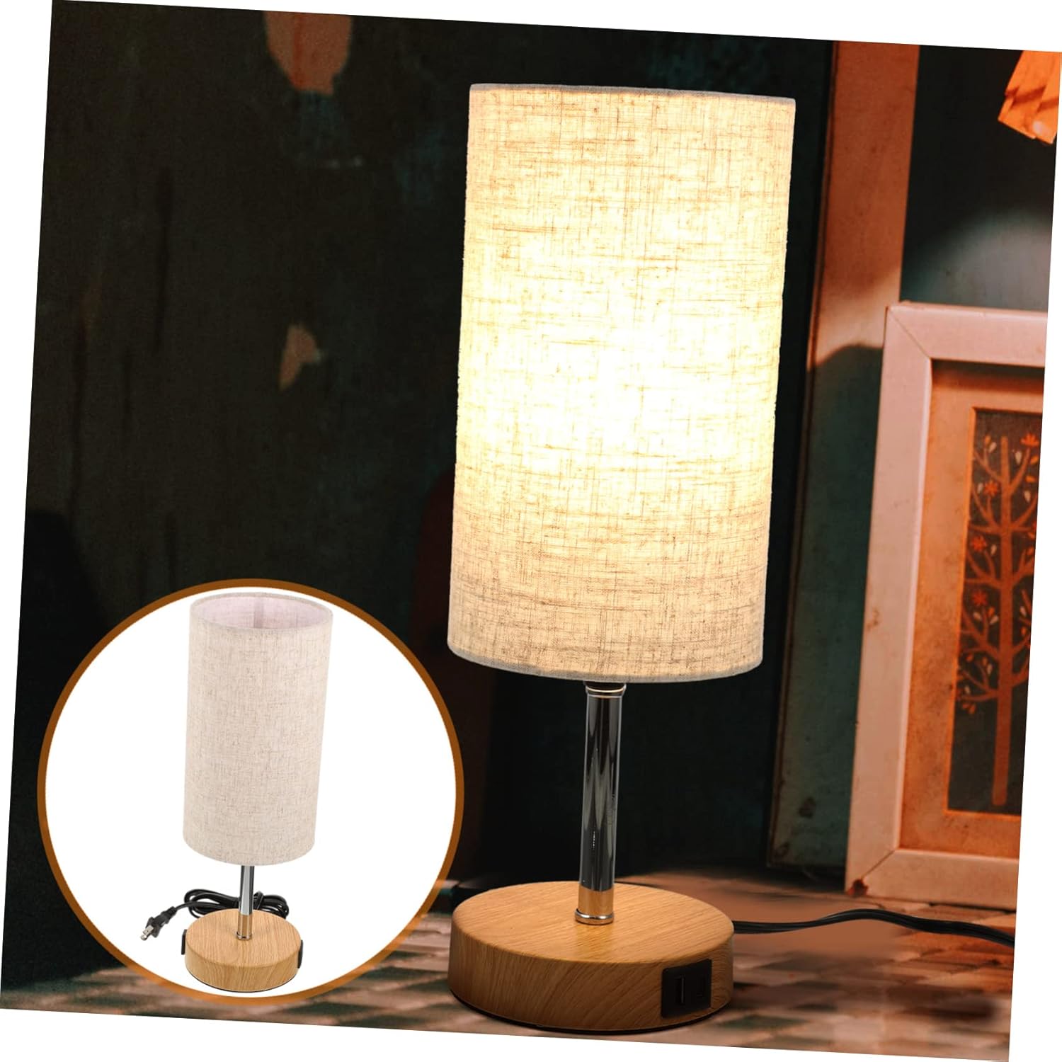 Package Include 1 x Bedside Lamp Features -US: AC110V desk lamps for home office. -Feature: dual USB ports, 3 gears touch desk lamps -Color:Beige night light -Size:40.00X14.50X14.50cm/15.72X5.70X5.70in portable LED lamp -Material:Wood, glass, cloth bedside lamp with charging station -Light holder: (Bulb not included) bookshelf lamp - These lamp for bedside is stylish design, makes it easy to control, convenient for daily application dresser lamp - The bedside lamp may have a portable design that allows you to easily move it from room to room study lamp - With USB port, the lamp conveniently charge your mobile phone, tablet, or other USB-powered devices warm light lamp. - The table lamp is constructed of fabric lampshades and wood base, combined with minimalist and modern styles table desk lamp with stand - The bedside lamp is versatile and can be used for a variety of purposes, including reading, studying, working, and relaxing touching control lampGoods Descriptiontable lamp with USB , suitable for home furnishings and decoration, very simple and convenient to use.bedside night light Fabric lampshade desk lamp, uniform and softer light without glare, beautiful and decorative, perfect for room, bedroom, office, room, or college dorm, etc.bedroom lamp Note: This item comes with US plug, please confirm the voltage of your area before purchasing